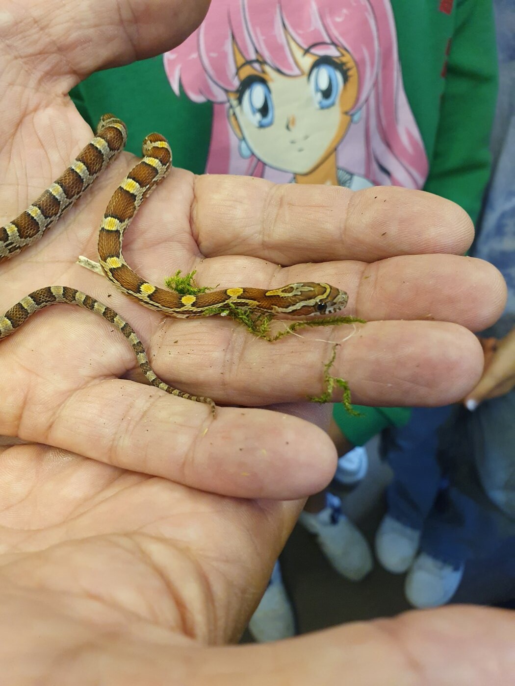 Seit Oktober 2023 pflege wir nsogar Reptilien. Flix und Flux, zwei junge Kornnattern, die wir über den Ring der Vivariumschulen vom Wilhelm Dörpfeld Gymnasium in Wuppertal gegen Eier unserer Türkisblauen Stabschrecken (Achrioptera manga) erhalten haben, bereichern das Leben im Vivarium und werden schon ab und zu im Unterricht eingesetzt.