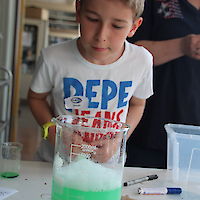 Höhe­punk­te waren die Her­stel­lung von duf­ten­der Knet­sei­fe und die abschlie­ßen­de Her­stel­lung einer Sei­fen­lö­sung zur Erstel­lung von Rie­sen­sei­fen­bla­sen. Das Flie­gen­las­sen der Sei­fen­bla­sen berei­te­te allen Teil­neh­mern zum Abschluss der Ver­an­stal­tung viel Spaß. Bei strah­len­dem Son­nen­schein konn­ten sich die Sei­fen­bla­sen sehen las­sen, die klei­nen Sei­fen­bla­sen aus dem Super­markt sind dage­gen Kinderkram.