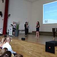 Antonia Paaßen und Mona Kuznecova, zwei Schülerinnen aus der diesjährigen Europaklasse (EP), konnten beim ältesten Schülerwettbewerb Deutschlands einen dritten Platz erzielen. Damit setzten sie sich mit ihrer Collage gegenüber 2.000 andere Teilnehmer in NRW durch und durften ihren Preis in Düsseldorf von Schulministerin Yvonne Gebauer persönlich entgegennehmen.